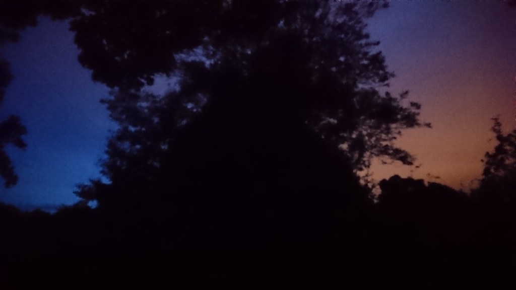 After the game we continued cycling for a short while and wild camped next to a quiet country road. The tree I was pitched behind gave me a very interesting view of the sunset. The quality of the photo isn’t great, but in real-life it was stunning.